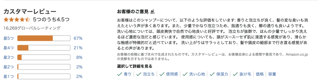 以下は、Amazonに集まったレビューをAIがまとめたものです!16,000以上のカスタマーレビューがあり、そのうち4.5はかなりの評価と言えるのではないでしょうか。